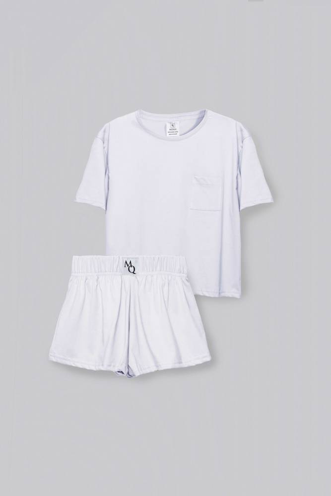 Urocza piżama damska uszyta z miękkiej i przyjemnej dla ciała bawełny. Model z oversizową, wygodną koszulką oraz krótkimi spodenkami podkreślającymi nogi. Spodenki mają nieco wyższy stan oraz szeroką gumę w pasie. Wykonana z niezwykle delikatnej i przewiewnej bawełny, zapewniającej komfort podczas snu.