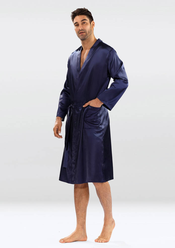 Christian Szlafrok męski satynowy Dkaren - granatowy