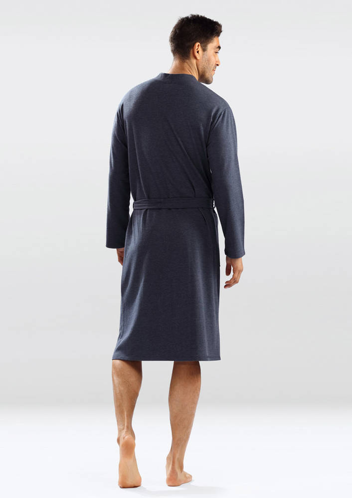 Długi i przyjemny w dotyku szlafrok wykonany z bawełny. Bawełniana tkanina natychmiast otuli Cię ciepłem i komfortem, czyniąc go idealnym wyborem na relaks lub odpoczynek. Szlafrok jest wiązany w pasie, posiada dwie kieszenie, które są idealne do przechowywania telefonu.