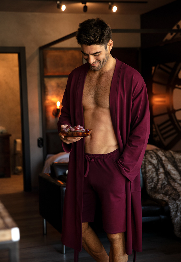 Długi i przyjemny w dotyku szlafrok wykonany z bawełny. Bawełniana tkanina natychmiast otuli Cię ciepłem i komfortem, czyniąc go idealnym wyborem na relaks lub odpoczynek. Szlafrok jest wiązany w pasie, posiada dwie kieszenie, które są idealne do przechowywania telefonu.