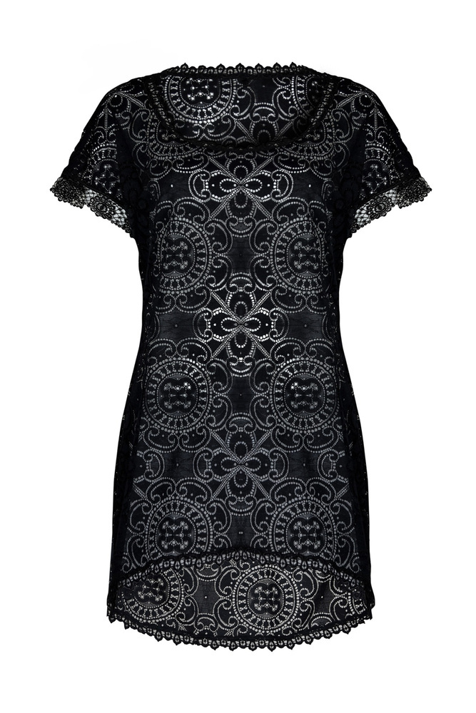 Sukienka plażowa wykonana z bogato zdobionego plenu.