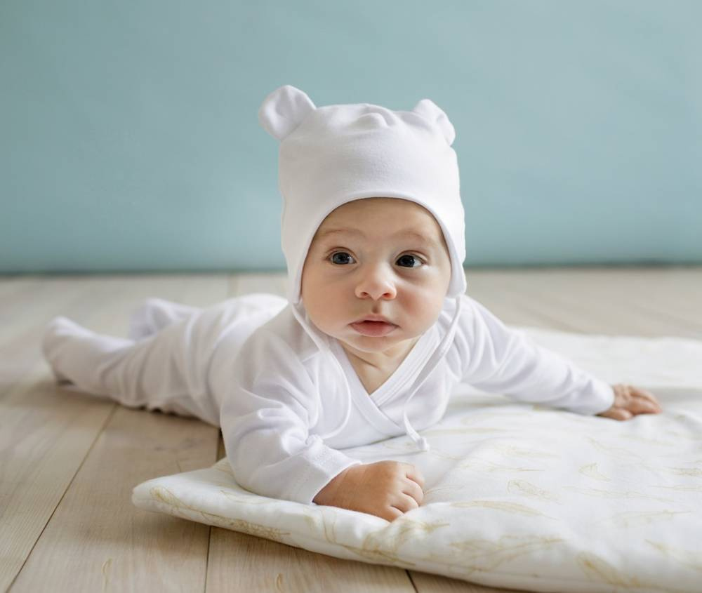 Бавовняна шапочка добре прилягає до голови, завдяки чому захищає вушка малюка від холоду.