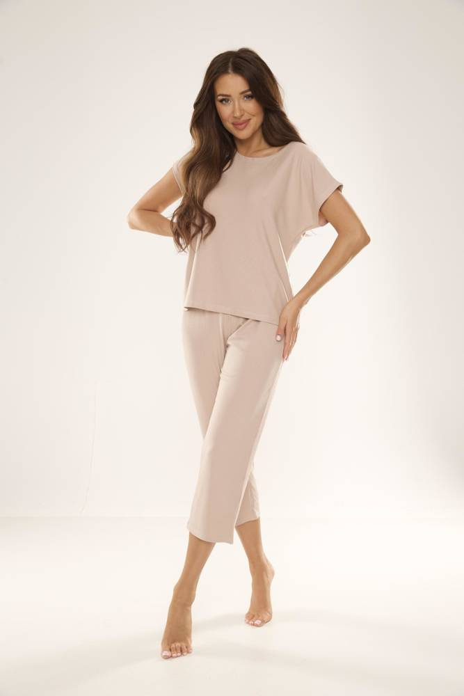 Dwuczęściowa piżamka firmy De lafense wykonana z wysokogatunkowej wiskozy. Idealna na dobry sen i na wspaniały początek dnia przy pierwszej porannej kawie. Luźna koszulka z krótkim rękawem. Spodnie jednolite, długości 7/8. Piżamka świetnie się sprawdzi jako wygodny homewear.