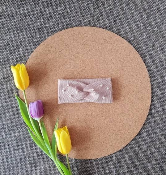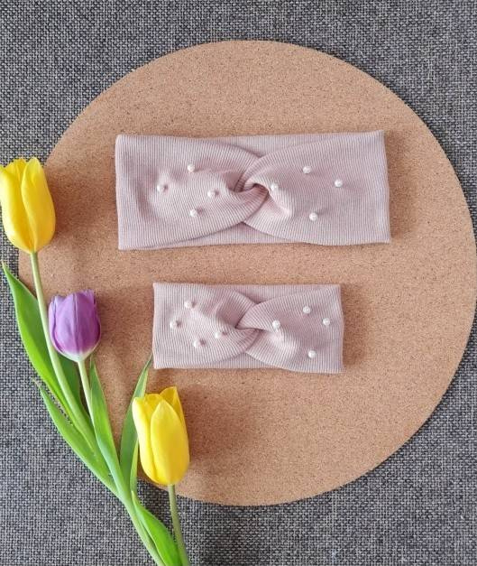 Delikatna, dziewczęca opaska z perełkami. Wykonana z miękkiej bawełny. Będzie doskonałym uzupełnieniem stylizacji. Doskonale komponuje się w zestawie z opaską dla mamy.