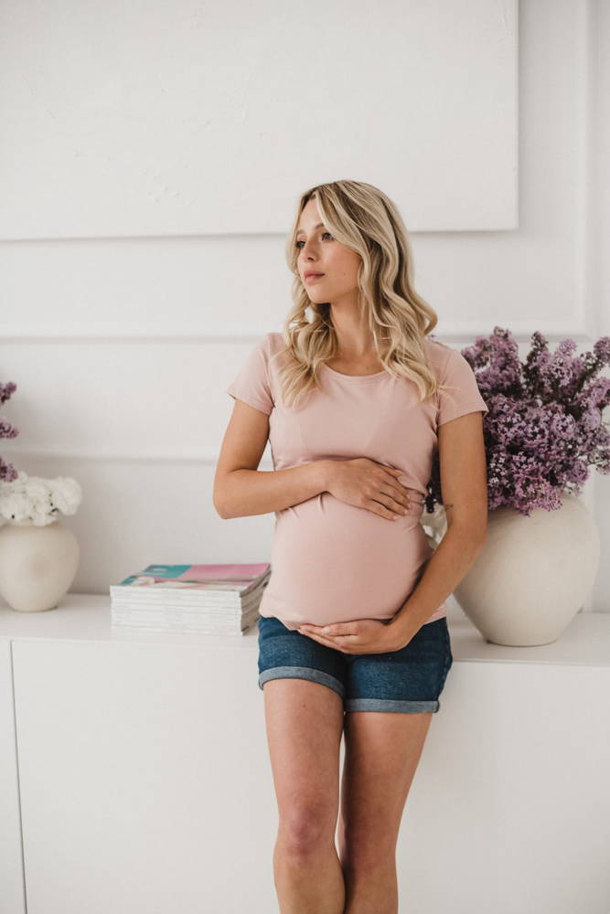 Niezwykle przyjemna i miła w dotyku bawełniana dzianina sprawia, że bluzka będzie idealna na cieplejsze dni i pozwoli skórze oddychać - idealna pod spód cieplejszej bluzy ciążowej/do karmienia