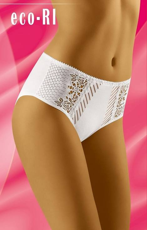 Figi z ażurowej koronki i gładkiej bawełny. Zabudowane na biodrach.