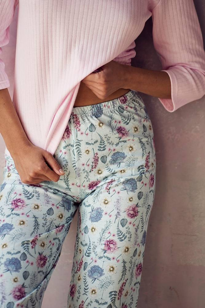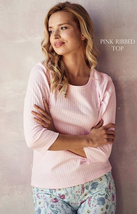 Piżama damska uszyta z wysokiej jakości bawełny. Koszulka jednolita w ażurowy prążek.