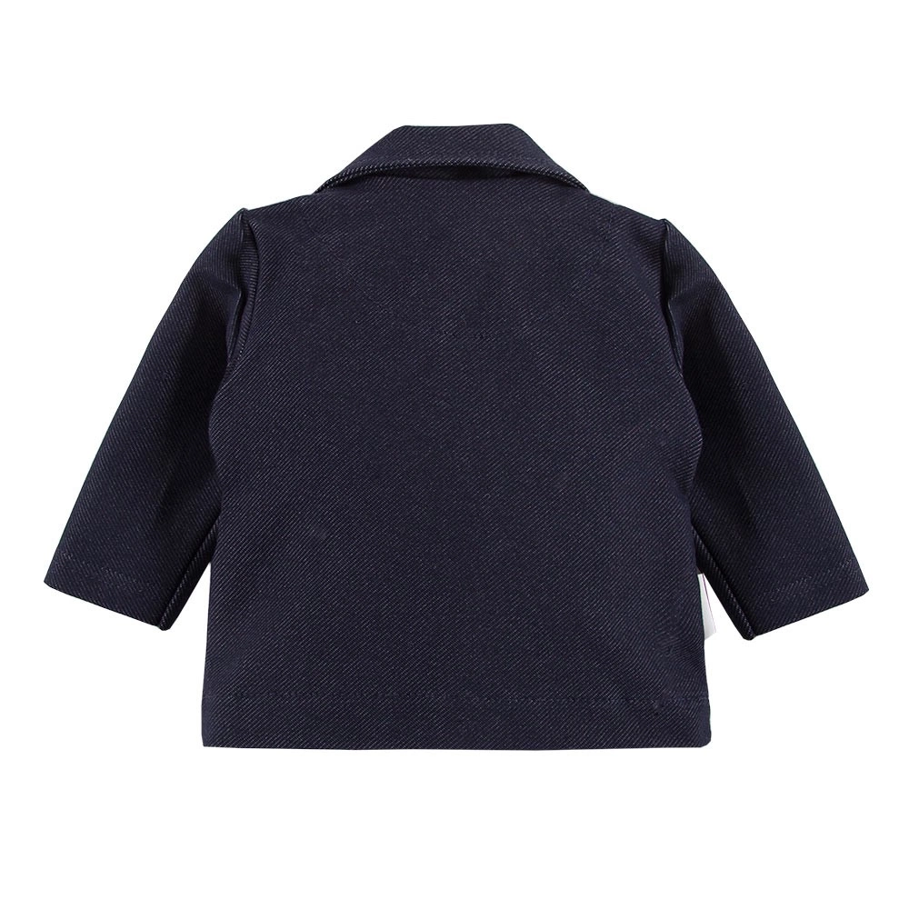 Marynarka chłopięca wykonana jest z dzianiny. Dzięki czemu jest wygodna i rozciągliwa.