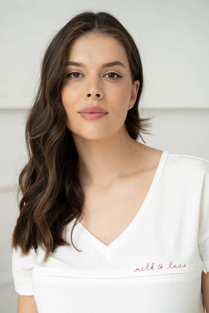 M-Shirt Bluzka ciążowa i do karmienia V-neck Milk&Love kremowobiały