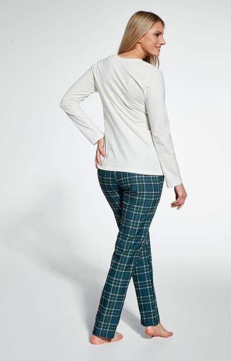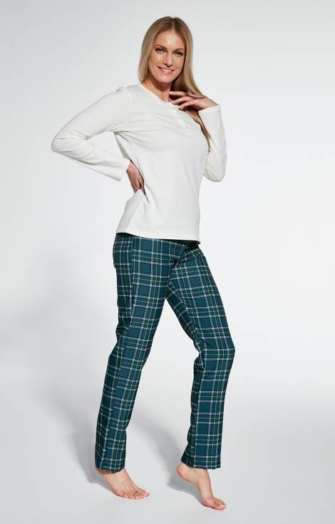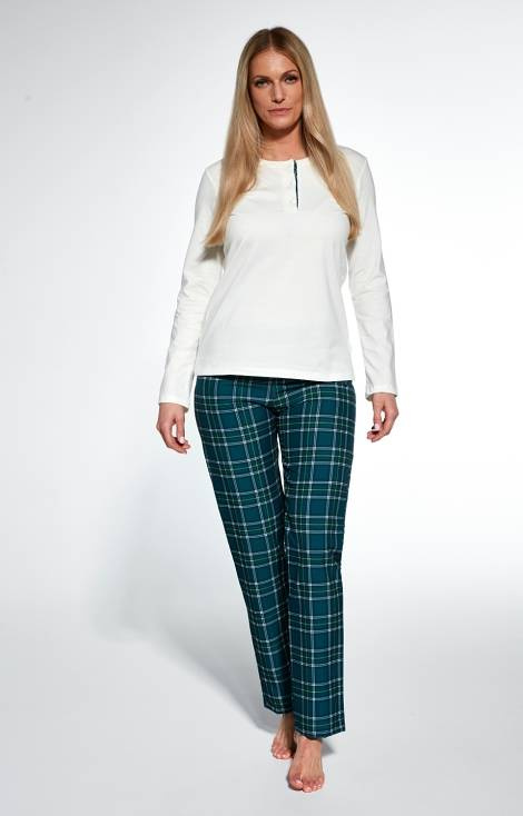 Wygodna piżama damska z wysokiej jakości wyjątkowo miłej i miękkiej bawełny. Koszulka z długim rękawem. Dekolt zapinany na guziki
