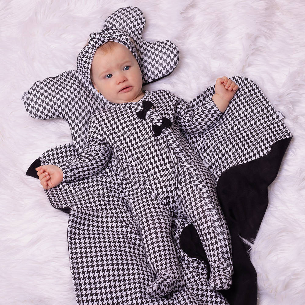Mięciutki pajacyk z długim rękawem. Wykonany z bawełny drukowanej, materiał posiada certyfikat Oeko-Tex Standard 100 Tekstylia godne zaufania. Zapinany wzdłuż całego ubranka na wygodne bezniklowe napy, by ułatwić przewijanie. Idealnie sprawdzi się jako jedno z pierwszych ubranek maluszka.