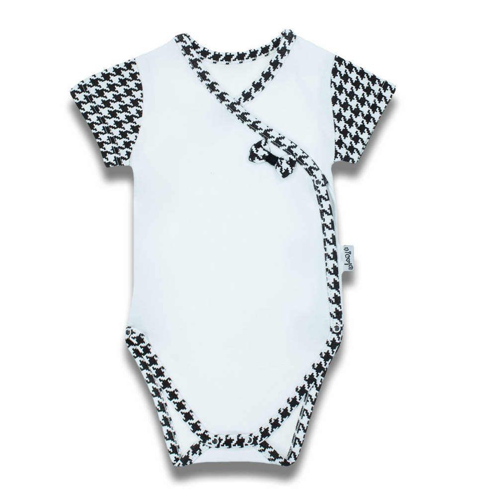 Wzorzyste body z krótkim rękawem. Body są zapinane na bezpieczne, bezniklowe napki.