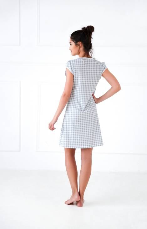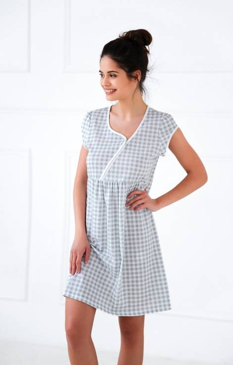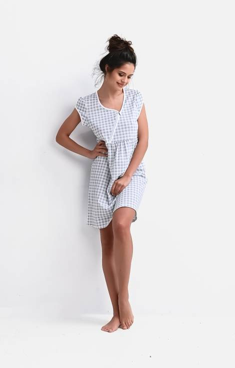 Koszula z krótkim rękawami, zapinana na zamek. Spodoba się kobietom, które uwielbiają delikatność i swobodę. Dekolt z zamkiem ułatwia karmienie piersią.