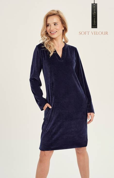 Tunika damska z długim rękawem uszyta z ciepłego weluru. Dekolt w serek.
